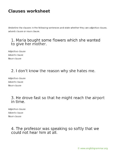 Adverbial clauses worksheet naming the function of clauses is as easy as pie in this seventh grade grammar worksheet the adjective adverb and noun clauses worksheet begins with a brief introduction to each type of clause it s also great for those studying general english at advanced level. These clauses are a type of complex sentence, so it is essential that you are able. Adverbs of place other contents Although, even though, though strong contrast clause: The verb tells you what the subject is doing or being.